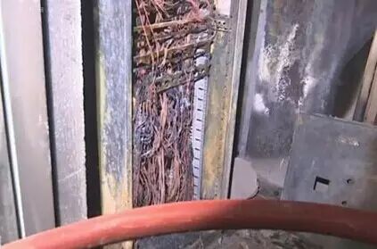 如上图所示的通病就有几处:1、进线没有经过任何保护措施。2、箱体严重不完整。3、电缆线无颜色区分。4、电缆接头没有热缩套管。5、施工布线混乱,容易造成电缆过热绝缘皮绝缘性能受影响。
